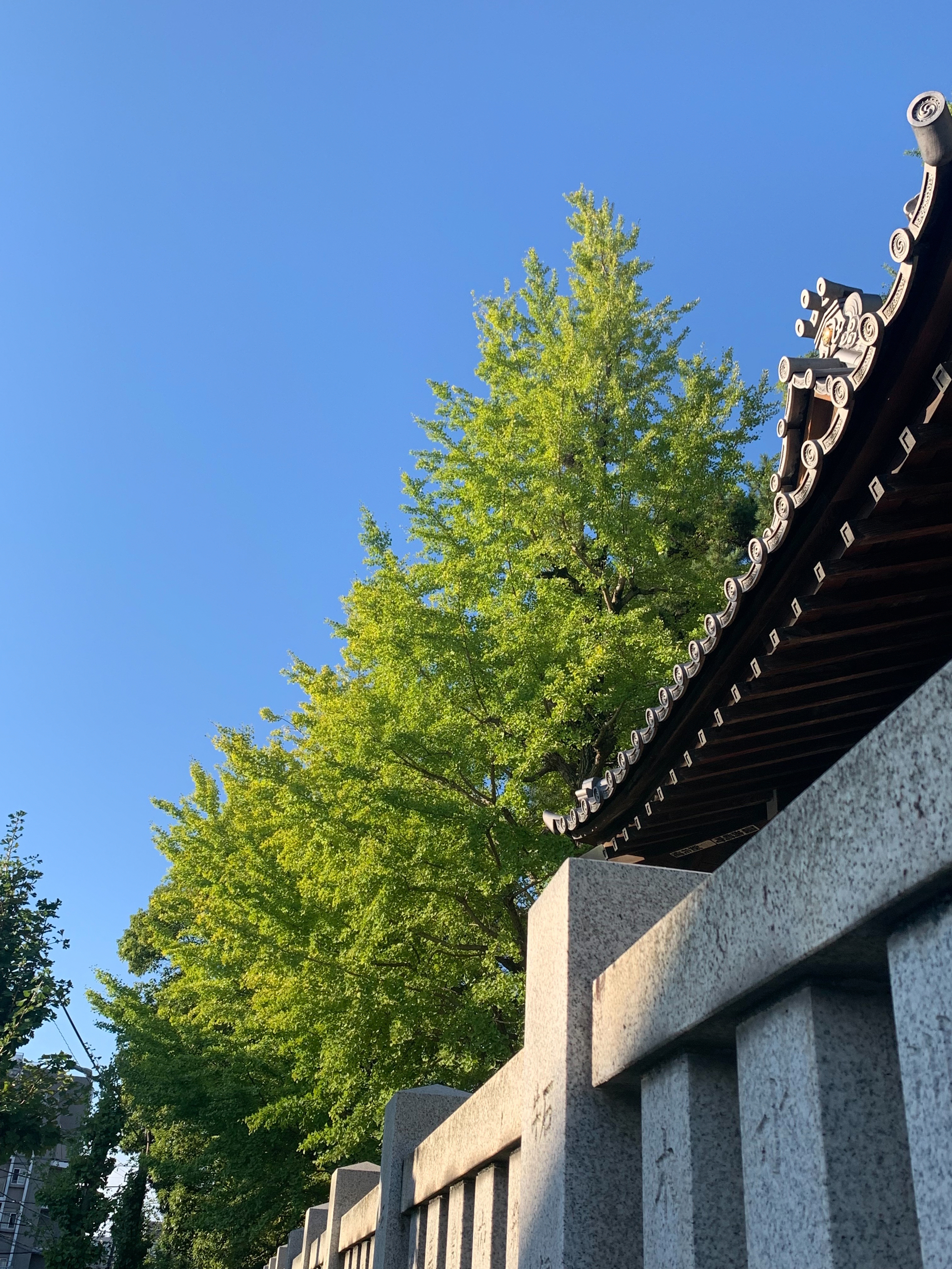 Los ginkgos suelen plantarse a lo largo de las calles japonesas y en los terrenos de los santuarios. Las hojas y los troncos del ginkgo tienen un mayor contenido de agua que otras plantas, lo que las hace menos inflamables y más resistentes al fuego. Se dice que en el periodo Edo, el ginkgo se plantaba en terrenos baldíos para evitar la propagación del fuego. También se planta dentro de los jardines de los santuarios, probablemente por la misma razón.